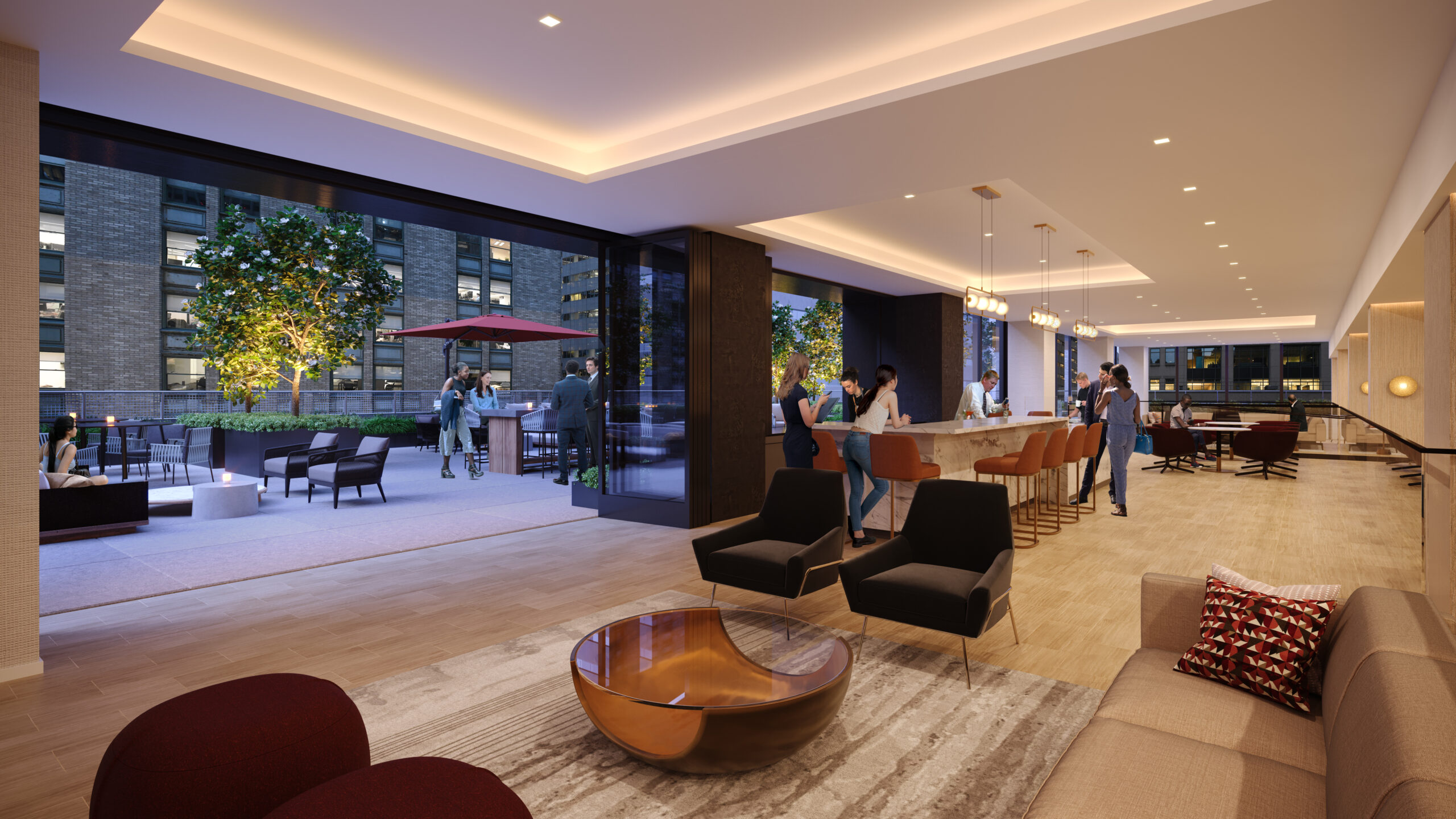 Seamlessly transition for the indoor lounge to the outdoor terrace for enhanced events.